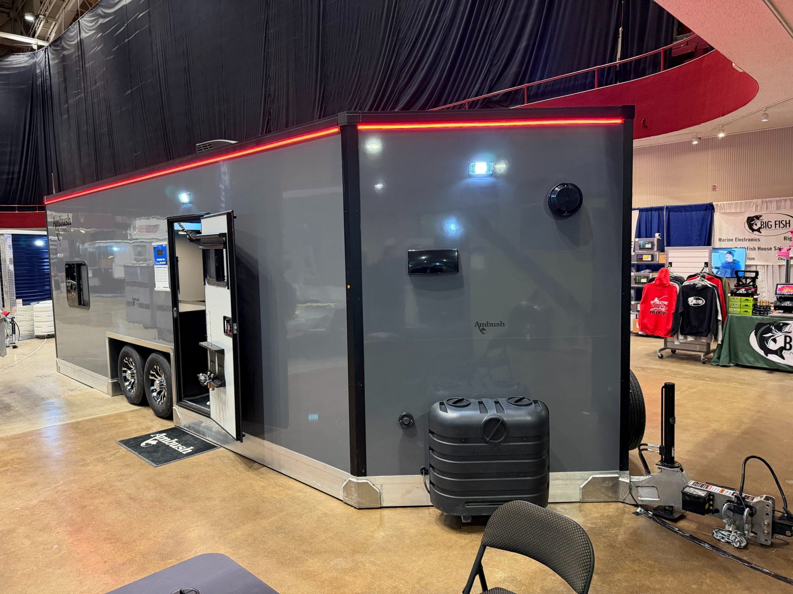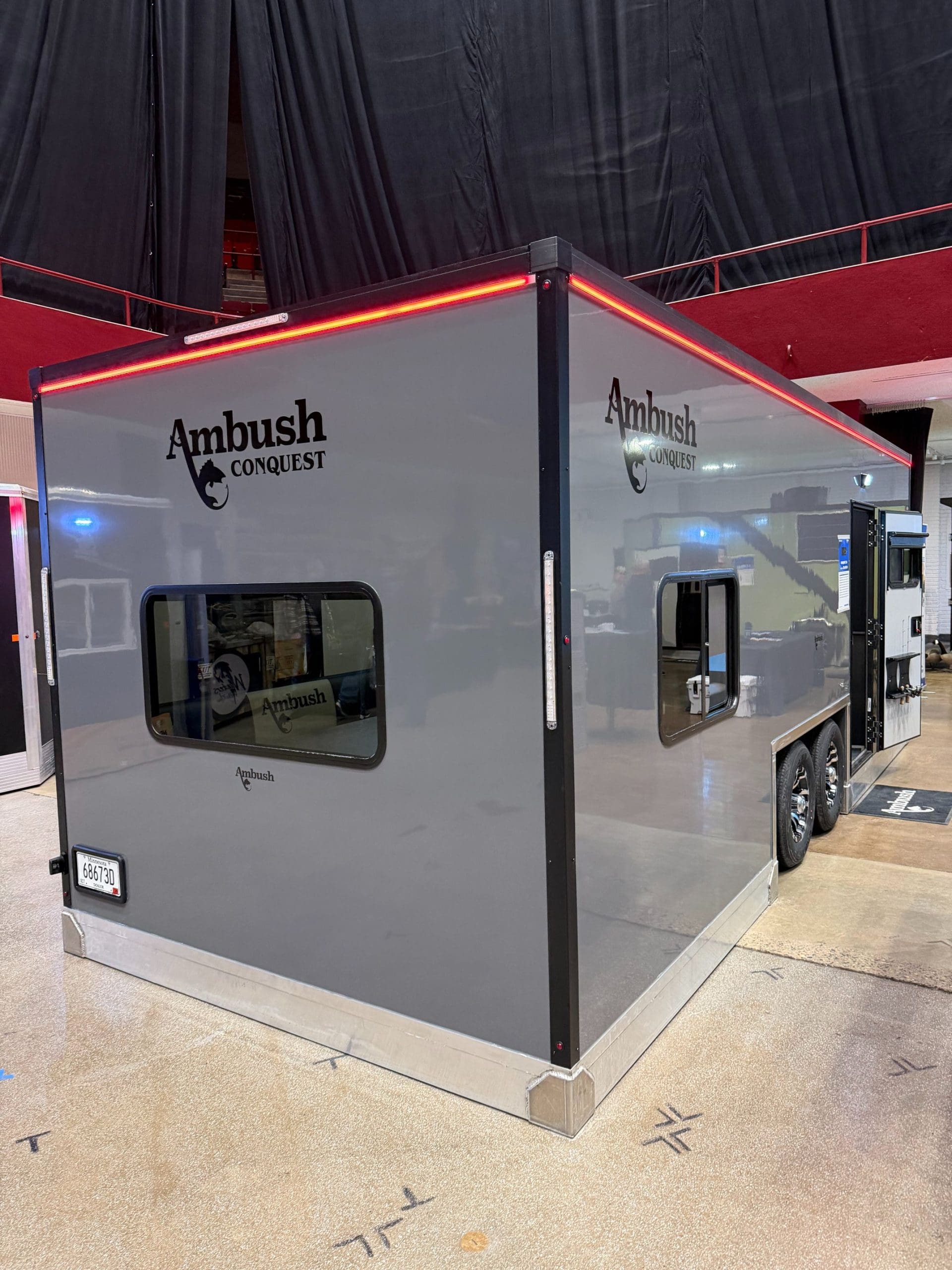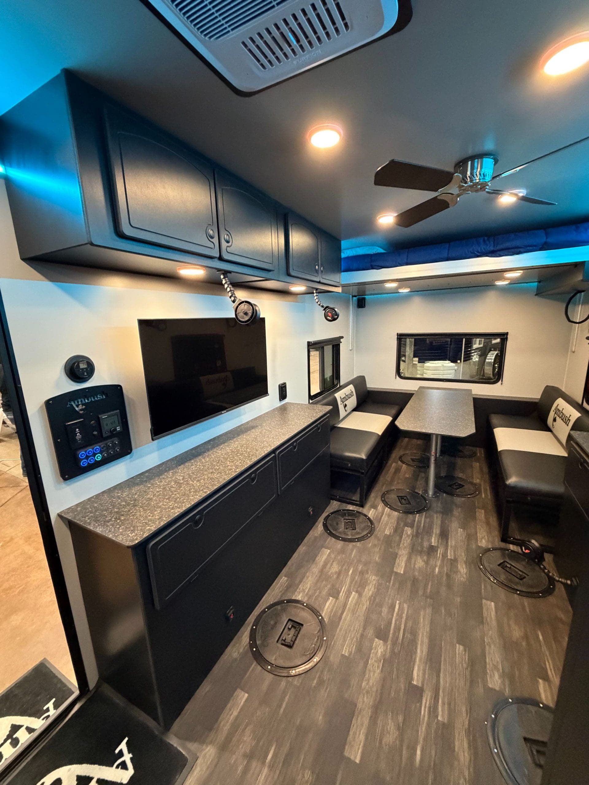 The Ambush Conquest 220 is our flagship wheel house. At 8.5 feet wide, the Conquest is our biggest and most well-equipped ice fishing house. No other wheelhouse on the market today can compare to the all-new Conquest 220. The roof, walls, and floor are all seamless panels, and the new hydraulic system lowers the entire house down to the ice without the need for a pivoting tongue. This is all accomplished with one click on the wireless remote. Strength and durability are ensured by a full-perimeter aluminum frame and 100% composite SIP walls, roof, and floor. Just like everything we build, the Ambush Conquest 220 wheelhouse is built without wood. We even manufacture our own cabinets out of 100% composite materials, so there is nothing to rot or rust. When you set foot in the Conquest 220, you are immediately transported to an ice fishing paradise with everything carefully thought out. Fishing First is more than just a tag line; it’s our commitment to building the most fishable and resilient fish houses available today. Our meticulous attention to detail, focus on quality, and dedication to producing a fish house that will last generations are the reasons people look and say, “Oh, it’s an Ambush!”