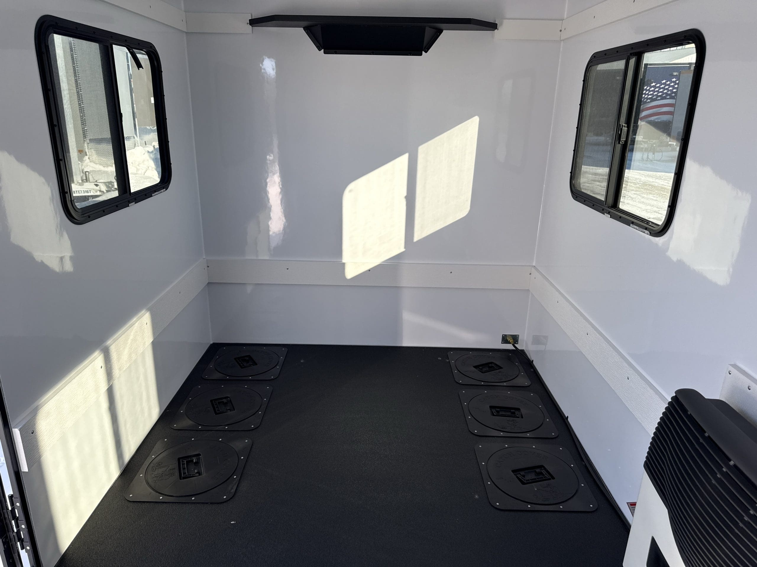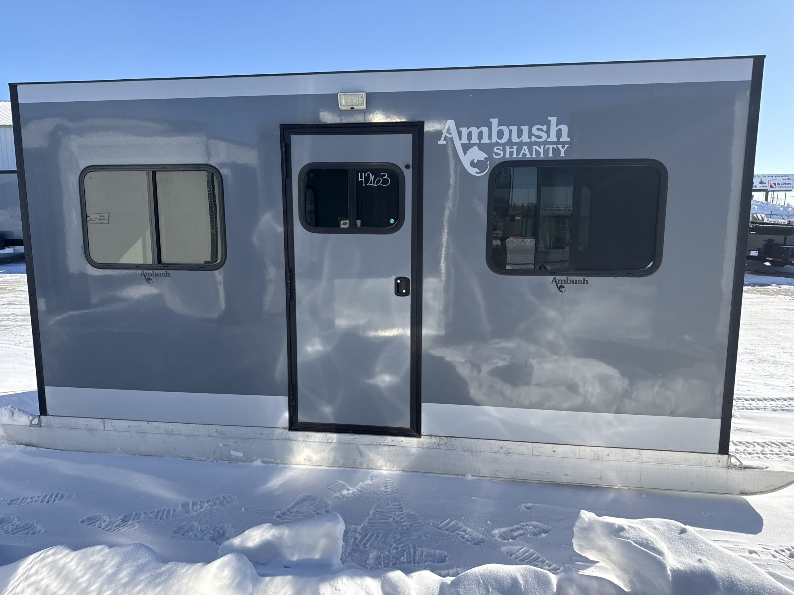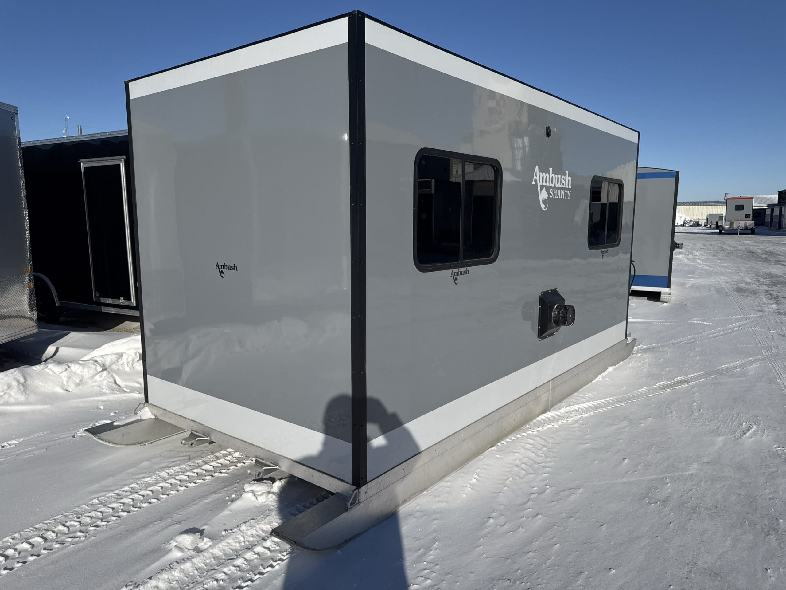 The Ambush Shanty skid House is a durable, all-aluminum, wood-free ice fishing skid house built for serious anglers. It features a seamless Durabond™ panel system, slip-resistant composite floor, and a finished fiberglass interior for comfort and longevity. With five standard windows and multiple layout options, it offers a bright, customizable space perfect for any ice fishing adventure.