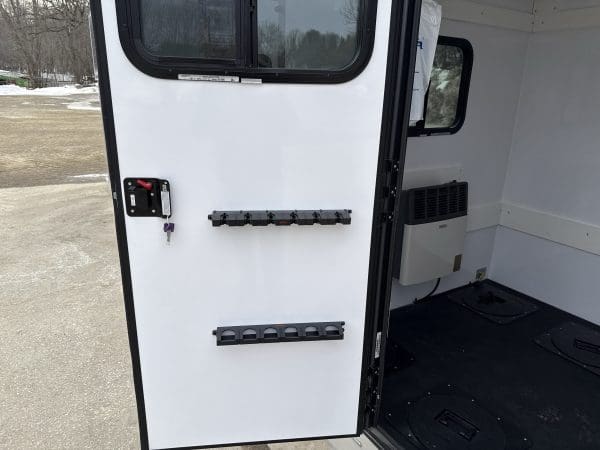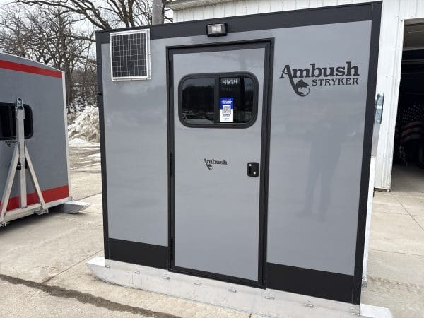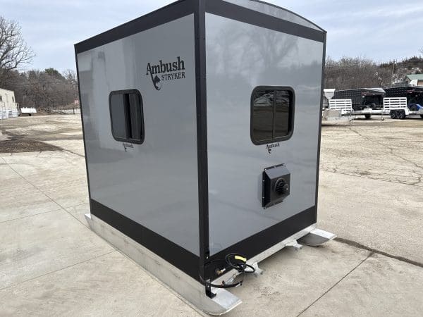 The Stryker Skid House is a one-of-a-kind ice fishing house. In addition to various skid house accessories, it includes up to 4 fishing holes and 1 spear hole (see configuration options). When configured for spearfishing, the Stryker Spear House is the only skid house that comes standard with one window in the door and a black interior. Moving to new locations and setting up has never been easier. Weighing only 620 pounds, the Stryker Ice House Skid lets you get on the ice earlier and later in the season. The Stryker can take you places in deep snow that a wheelhouse cannot. Featuring a strong chassis and skis, it allows the Stryker to be pulled from either direction for maximum versatility and convenience.