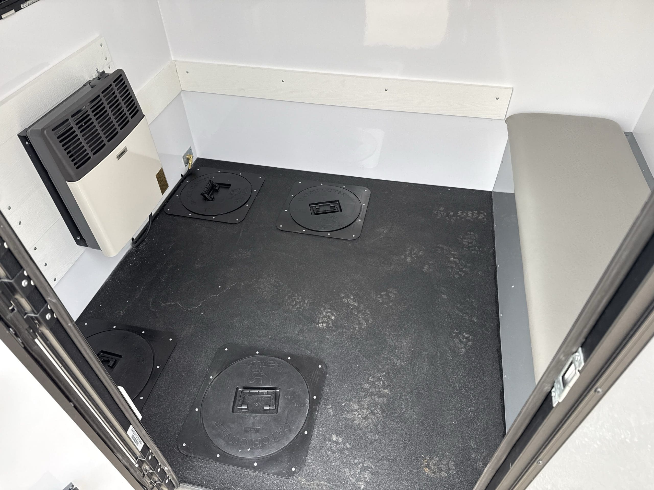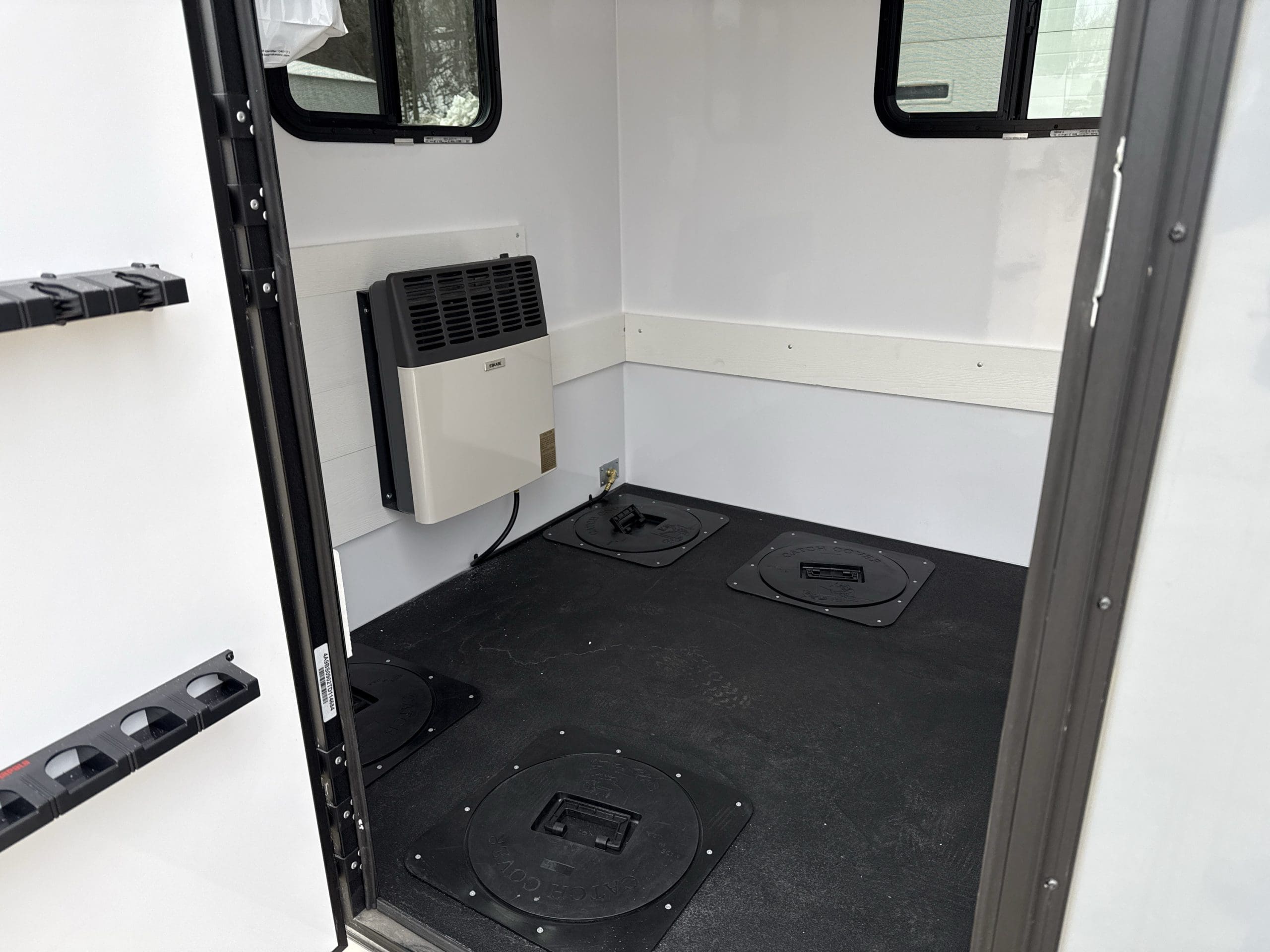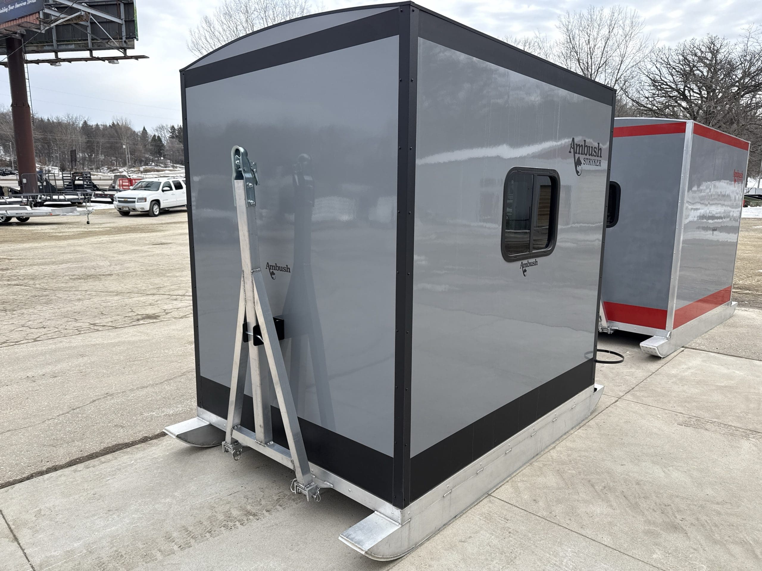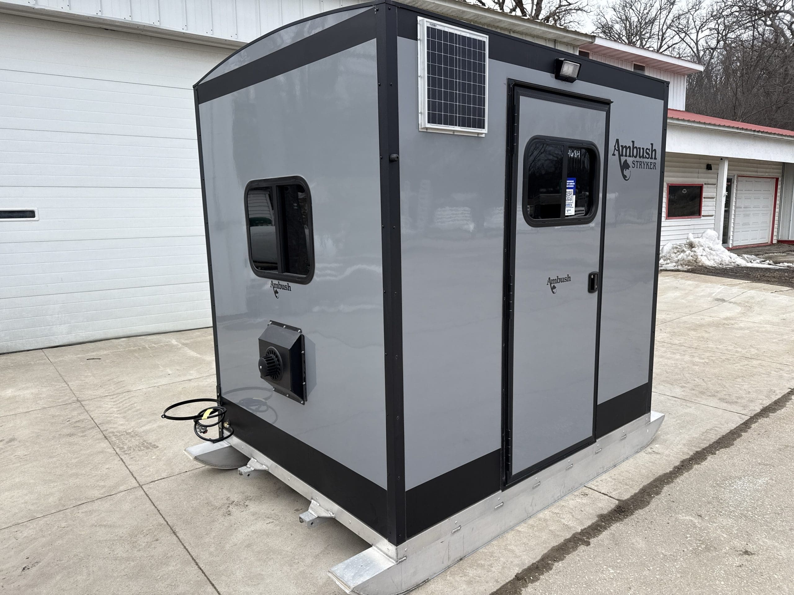 The Stryker Skid House is a one-of-a-kind ice fishing house. In addition to various skid house accessories, it includes up to 4 fishing holes and 1 spear hole (see configuration options). When configured for spearfishing, the Stryker Spear House is the only skid house that comes standard with one window in the door and a black interior. Moving to new locations and setting up has never been easier. Weighing only 620 pounds, the Stryker Ice House Skid lets you get on the ice earlier and later in the season. The Stryker can take you places in deep snow that a wheelhouse cannot. Featuring a strong chassis and skis, it allows the Stryker to be pulled from either direction for maximum versatility and convenience.