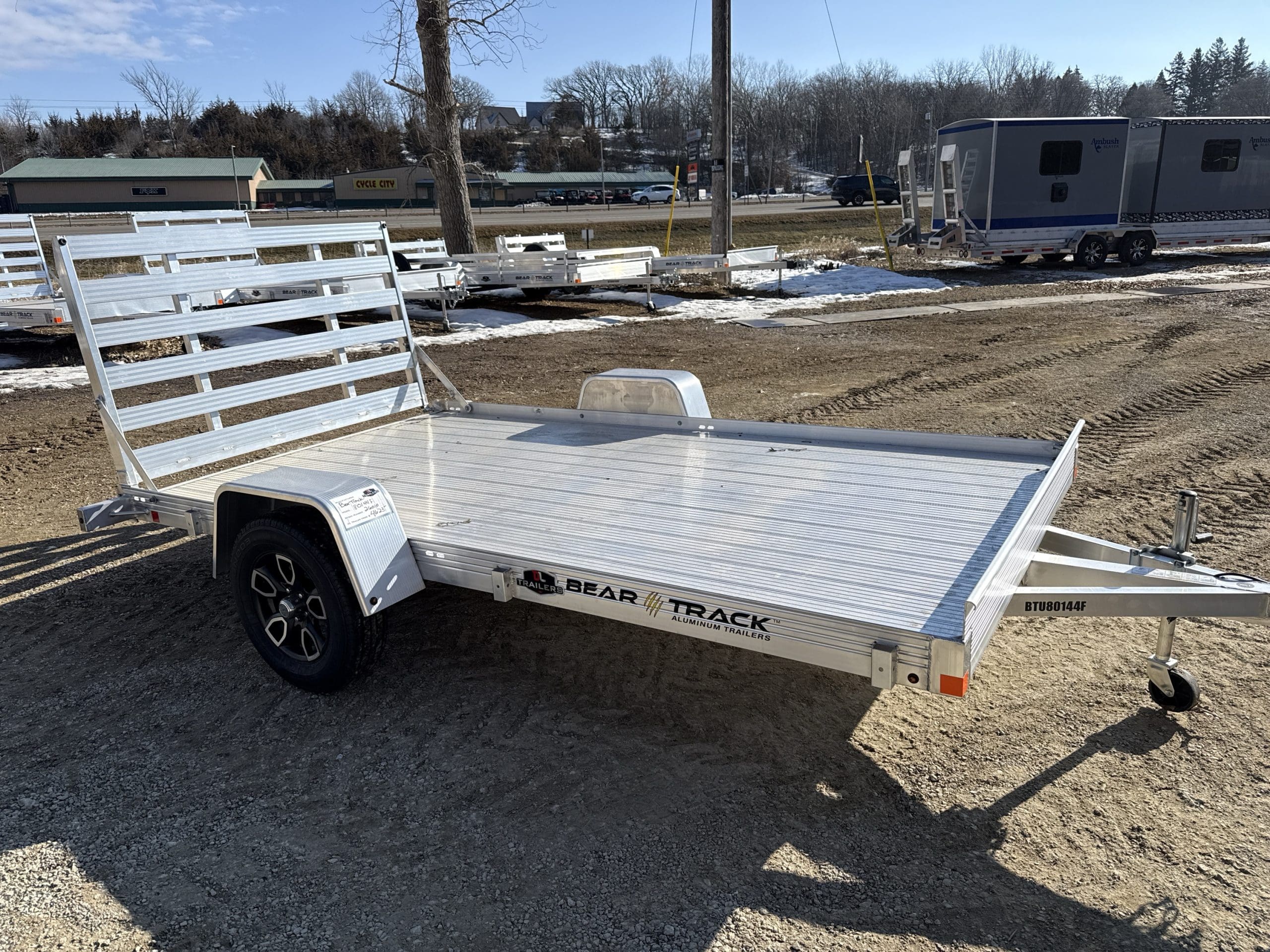 The Bear Track 80″ Wide Utility Trailer is perfect for lawnmowers and golf carts,building supplies, or hauling large debris. The easy-to-use trailer with a low-rise bed for easy loading will save time from loading into a cumbersome pickup bed or SUV. Plus – with a tough, all-aluminum trailer frame by Bear Track, you know you have the most innovative, dependable trailer. When looking for the perfect utility trailer stop by DL Trailers in Rochester, MN and check out our selection.