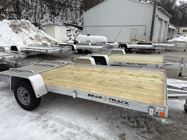 The Bear Track 80″ Wide Utility Trailer is perfect for lawnmowers and golf carts,building supplies, or hauling large debris. The easy-to-use trailer with a low-rise bed for easy loading will save time from loading into a cumbersome pickup bed or SUV. Plus – with a tough, all-aluminum trailer frame by Bear Track, you know you have the most innovative, dependable trailer.  When looking for the perfect utility trailer stop by DL Trailers in Rochester, MN and check out our selection.