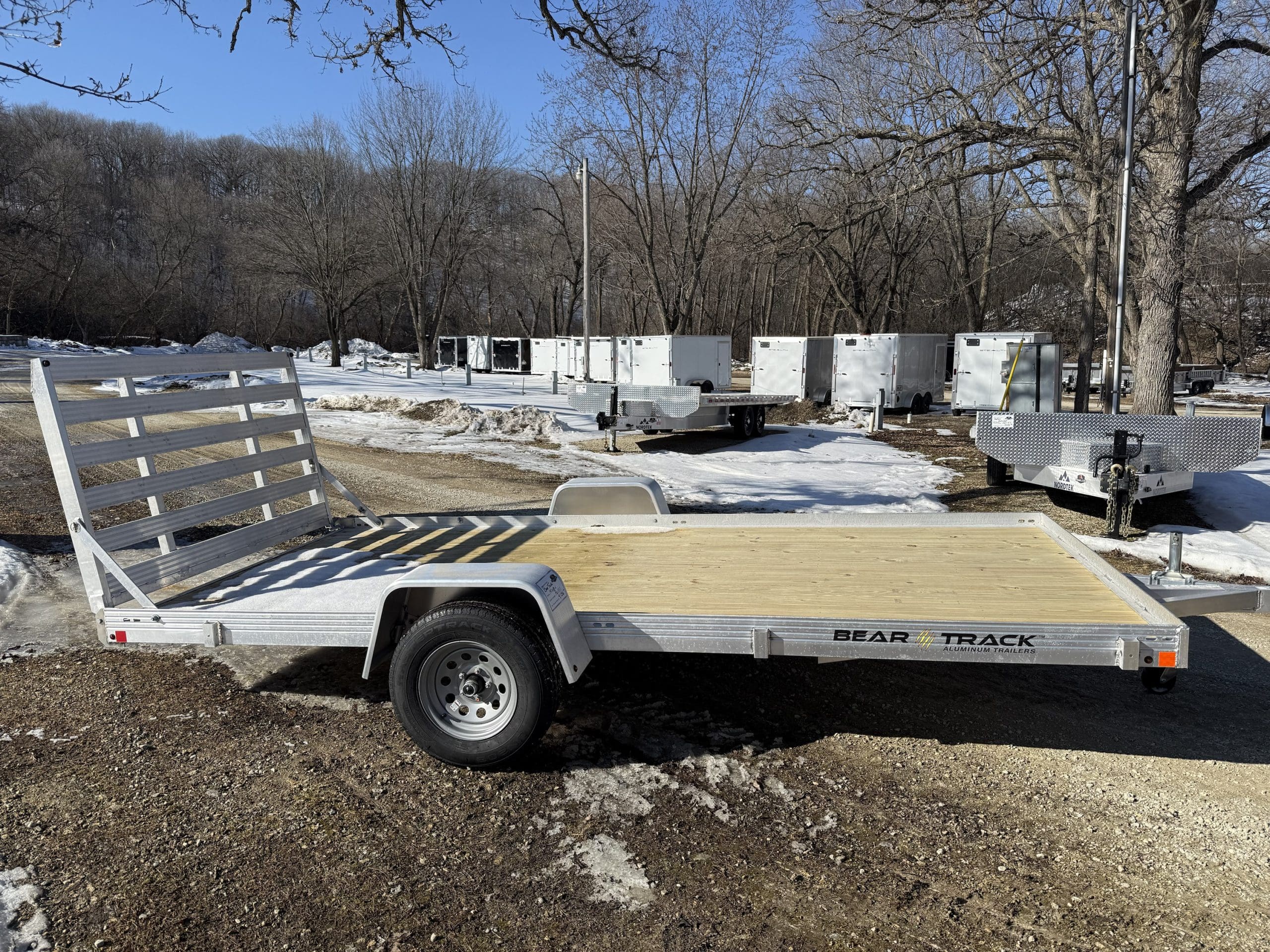 The Bear Track 80″ Wide Utility Trailer is perfect for lawnmowers and golf carts,building supplies, or hauling large debris. The easy-to-use trailer with a low-rise bed for easy loading will save time from loading into a cumbersome pickup bed or SUV. Plus – with a tough, all-aluminum trailer frame by Bear Track, you know you have the most innovative, dependable trailer. When looking for the perfect utility trailer stop by DL Trailers in Rochester, MN and check out our selection.