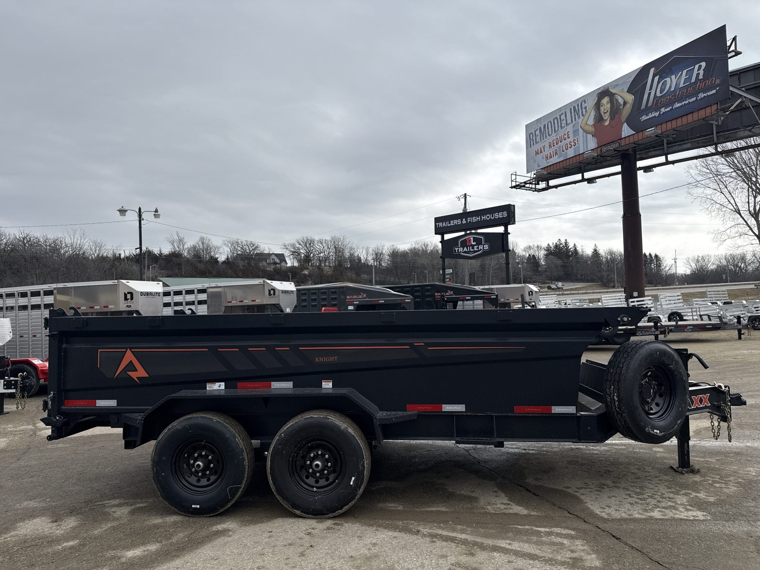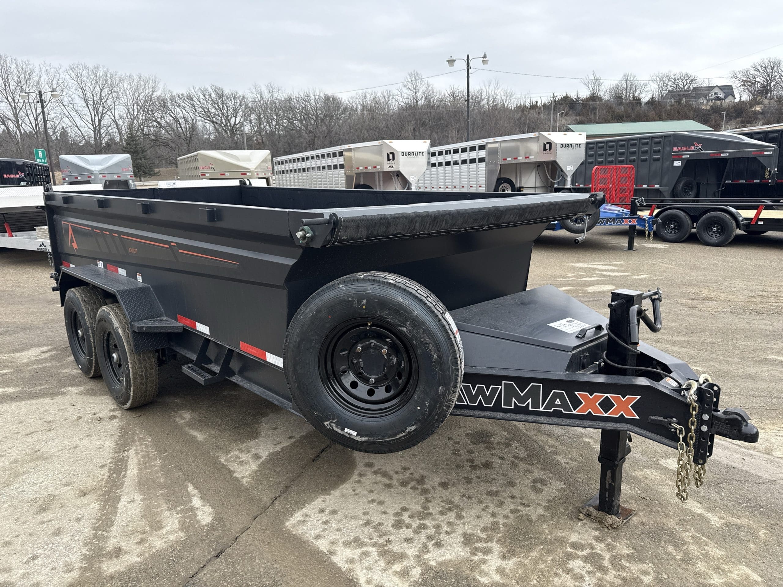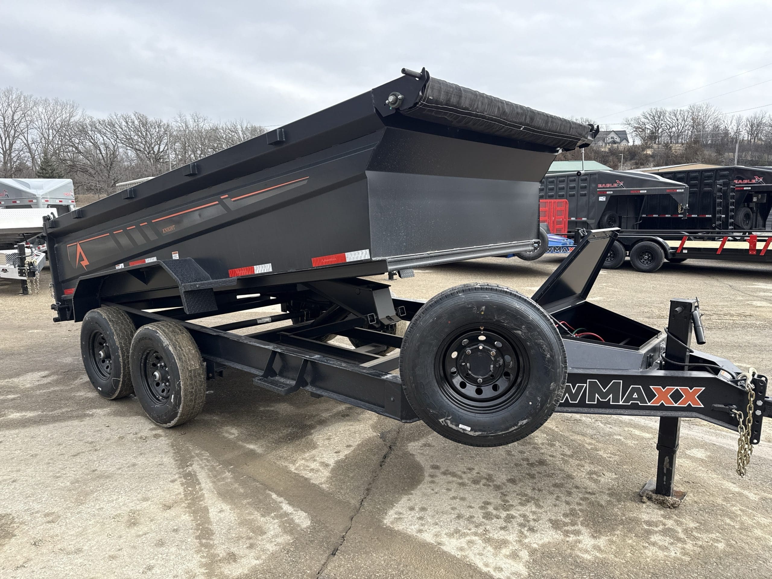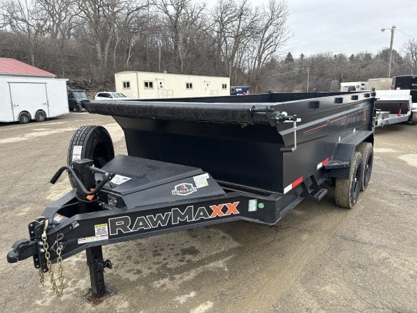 The Rawmaxx GDX dump trailer will rule the job site. When those big jobs demand a strong dump trailer, the GDX answers the call. The GDX is 83″ wide and is built to move all of your heavy material. The Rawmaxx GDX dump has a 14,000 pound GVW and can haul over 11,000 pounds. The Rawmaxx GDX dump trailer is built with an 8″ I beam frame with reinforced cross members and a 10 guage floor with 12 guage side walls. The Rawmaxx GDX has supreme strength, supreme performance, and supreme confidence to tackle even the heaviest of jobs.