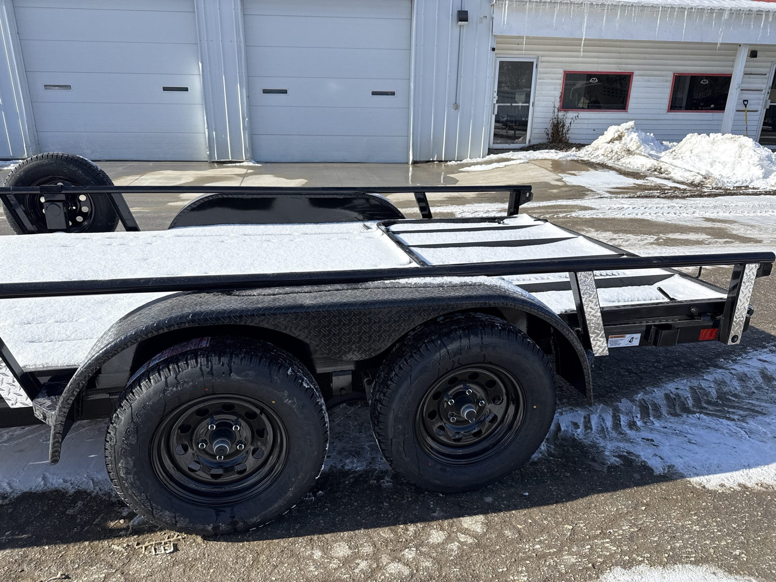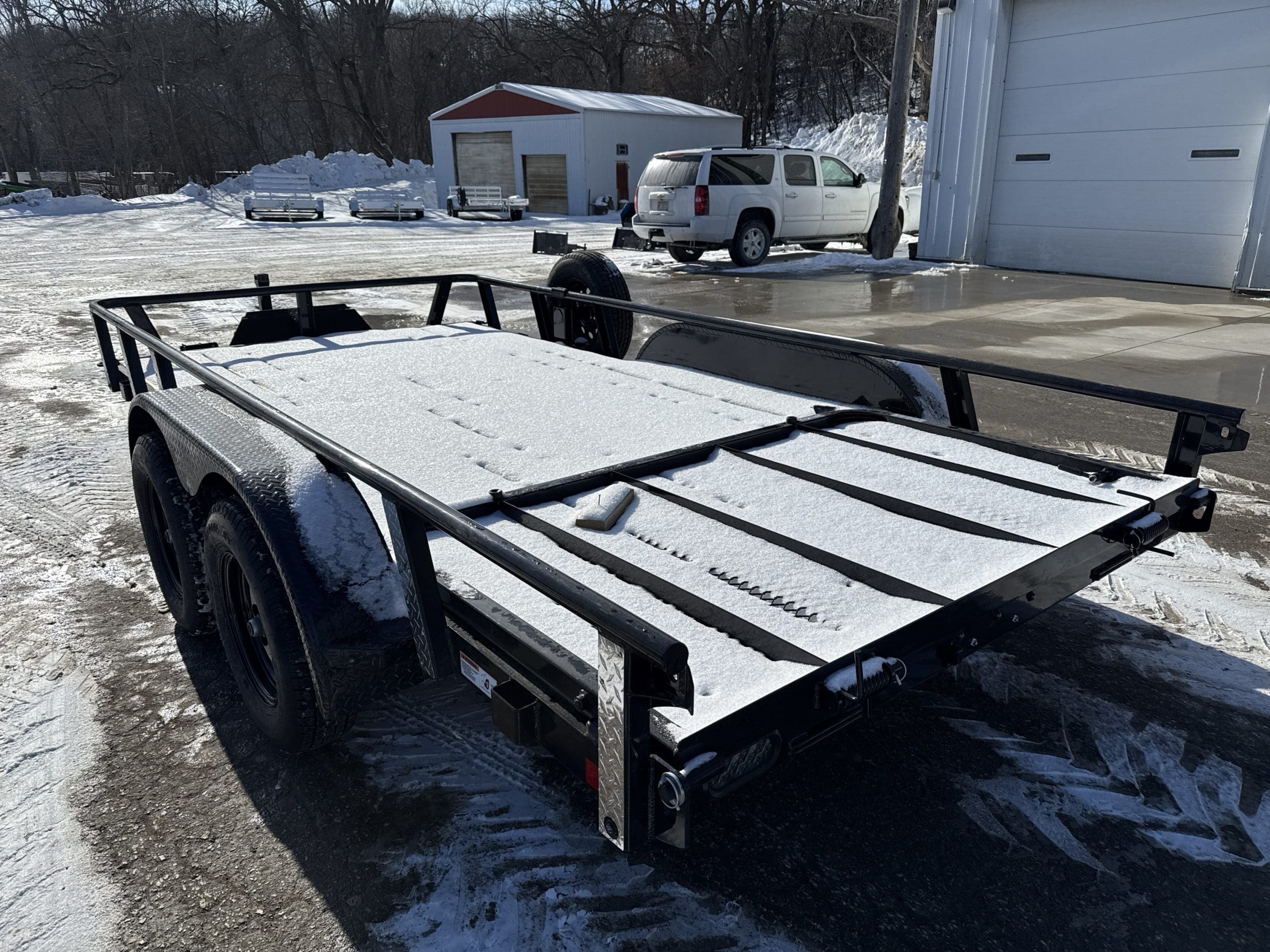 The UTX trailer is a sturdy and reliable heavy-duty equipment hauler, available in seven different sizes: 12′ x 77″, 14′ x 77″, 16′ x 77″, 18′ x 83″, 20′ x 83″, 22′ x 83″, and 24′ x 83″. With a deck height of 18″ and a 2″ treated lumber deck, this trailer can handle small jobs with ease. Its 4″ channel main frame and 3″ channel cross-members, spaced 16″ apart, provide strength and durability. The axles have a rating of 3,500 lbs. and feature 8-ply radial tires for superior traction and stability. The UTX offers a range of options to customize the trailer to your specific needs, including axle configurations, tail options, and deck options. The powder-coat finish ensures the trailer will look good for years to come, and it comes with a 3-year structural warranty and a 1-year paint warranty. Safety features include an electric breakaway kit and 3M DOT-compliant reflective tape, making this trailer a safe and reliable option for hauling heavy equipment.