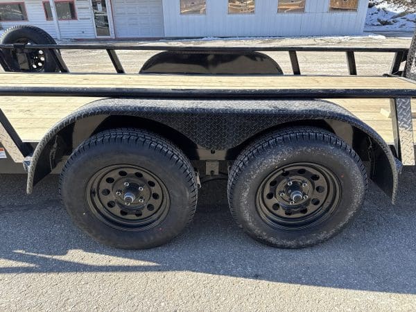 The UTX trailer is a sturdy and reliable heavy-duty equipment hauler, available in seven different sizes: 12′ x 77″, 14′ x 77″, 16′ x 77″, 18′ x 83″, 20′ x 83″, 22′ x 83″, and 24′ x 83″. With a deck height of 18″ and a 2″ treated lumber deck, this trailer can handle small jobs with ease. Its 4″ channel main frame and 3″ channel cross-members, spaced 16″ apart, provide strength and durability. The axles have a rating of 3,500 lbs. and feature 8-ply radial tires for superior traction and stability. The UTX offers a range of options to customize the trailer to your specific needs, including axle configurations, tail options, and deck options. The powder-coat finish ensures the trailer will look good for years to come, and it comes with a 3-year structural warranty and a 1-year paint warranty. Safety features include an electric breakaway kit and 3M DOT-compliant reflective tape, making this trailer a safe and reliable option for hauling heavy equipment.