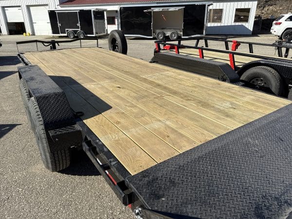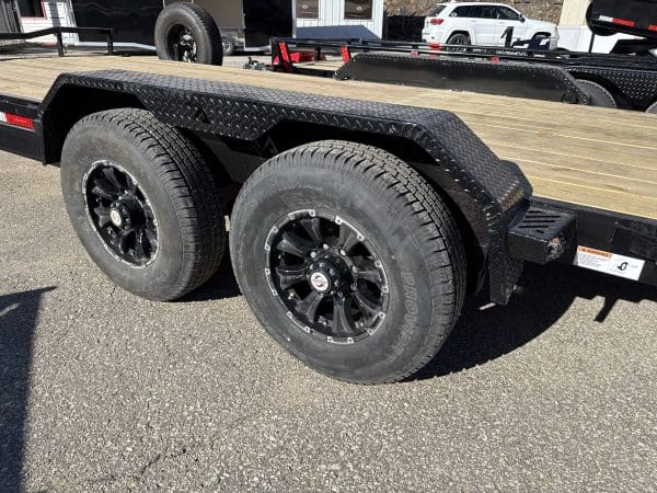 The ECX trailer is a sturdy, reliable heavy-duty equipment hauler, available in three different sizes: 16′ x 83″, 20′ x 83″, and 24′ x 83″. It can handle a maximum weight of 14,000 lbs. and has an impressive load capacity of 12,558 lbs. With a deck height of 26″ and a 2″ treated lumber deck, this trailer can handle heavy equipment with ease. Its 6″ channel main frame and 3″ channel cross-members, spaced 16″ apart, provide strength and durability. The two electric axles have a rating of 7,000 lbs. and feature 10-ply radial tires for superior traction and stability. The ECX offers a range of options to customize the trailer to your specific needs, including axle configurations, tail options, and deck options. The powder-coat finish ensures the trailer will look good for years to come, and it comes with a 3-year structural warranty and a 1-year paint warranty. Safety features include 3/8″ G70 safety chains, an electric breakaway kit, and 3M DOT-compliant reflective tape, making this trailer a safe and reliable option for hauling heavy equipment.