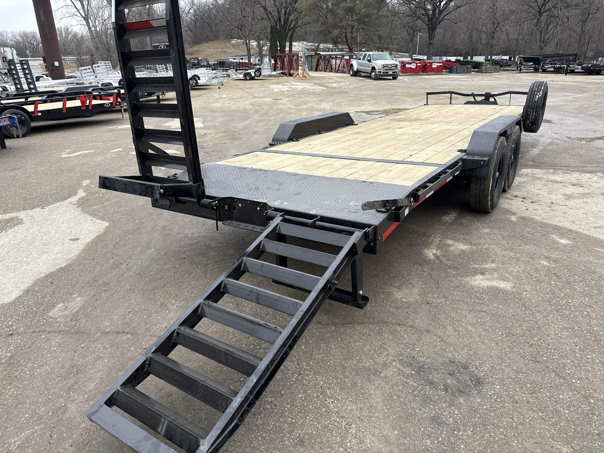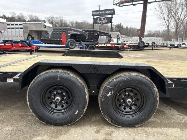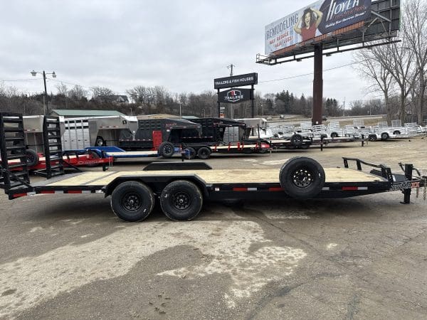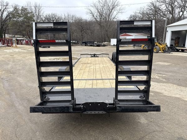 The ECX trailer is a sturdy, reliable heavy-duty equipment hauler, available in three different sizes: 16′ x 83″, 20′ x 83″, and 24′ x 83″. It can handle a maximum weight of 14,000 lbs. and has an impressive load capacity of 12,558 lbs. With a deck height of 26″ and a 2″ treated lumber deck, this trailer can handle heavy equipment with ease. Its 6″ channel main frame and 3″ channel cross-members, spaced 16″ apart, provide strength and durability. The two electric axles have a rating of 7,000 lbs. and feature 10-ply radial tires for superior traction and stability. The ECX offers a range of options to customize the trailer to your specific needs, including axle configurations, tail options, and deck options. The powder-coat finish ensures the trailer will look good for years to come, and it comes with a 3-year structural warranty and a 1-year paint warranty. Safety features include 3/8″ G70 safety chains, an electric breakaway kit, and 3M DOT-compliant reflective tape, making this trailer a safe and reliable option for hauling heavy equipment.