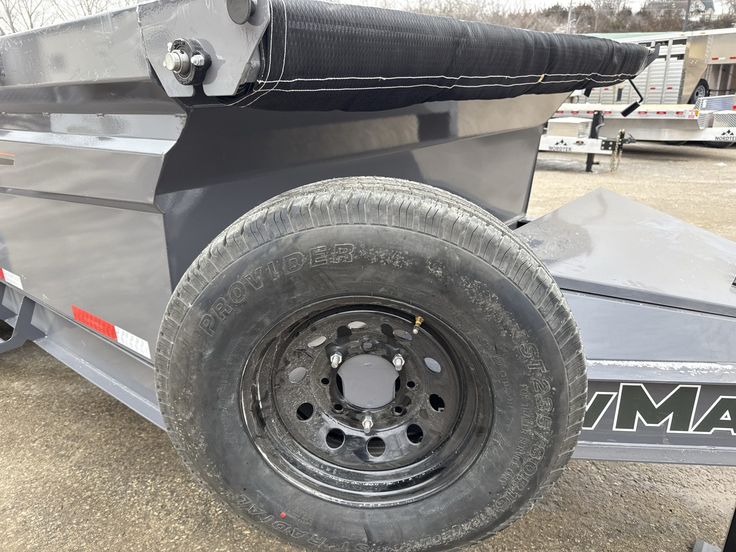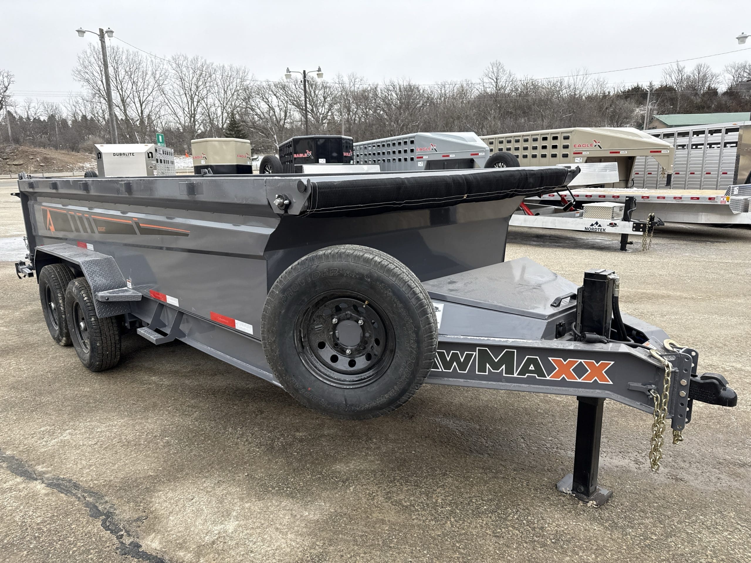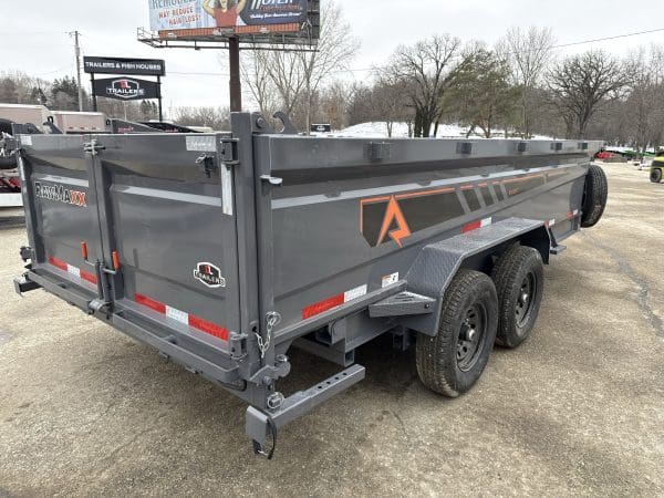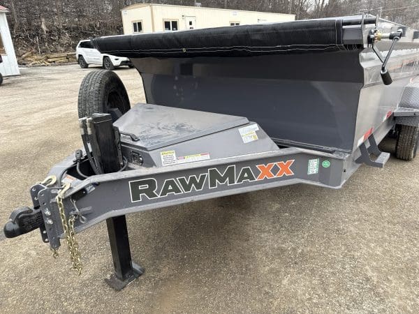 The Rawmaxx GDX dump trailer will rule the job site.  When those big jobs demand a strong dump trailer, the GDX answers the call.  The GDX is 83″ wide and is built to move all of your heavy material.  The Rawmaxx GDX dump has a 14,000 pound GVW and can haul over 11,000 pounds.  The Rawmaxx GDX dump trailer is built with an 8″ I beam frame with reinforced cross members and a 10 guage floor with 12 guage side walls.  The Rawmaxx GDX has supreme strength, supreme performance, and supreme confidence to tackle even the heaviest of jobs.