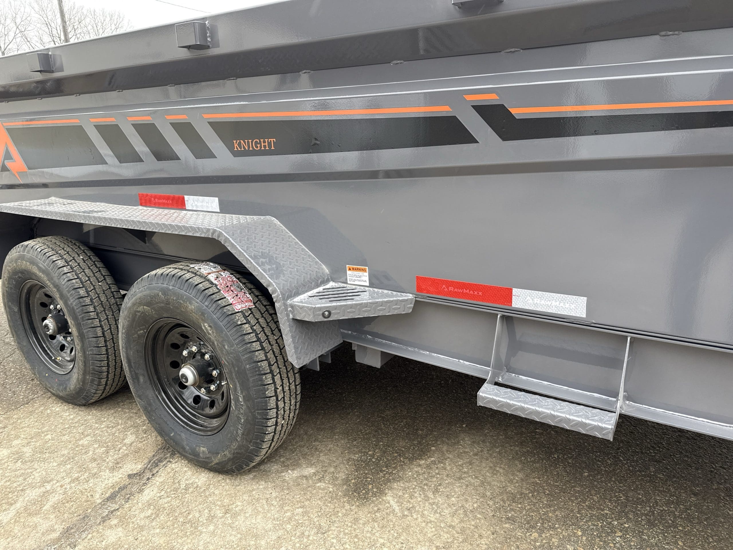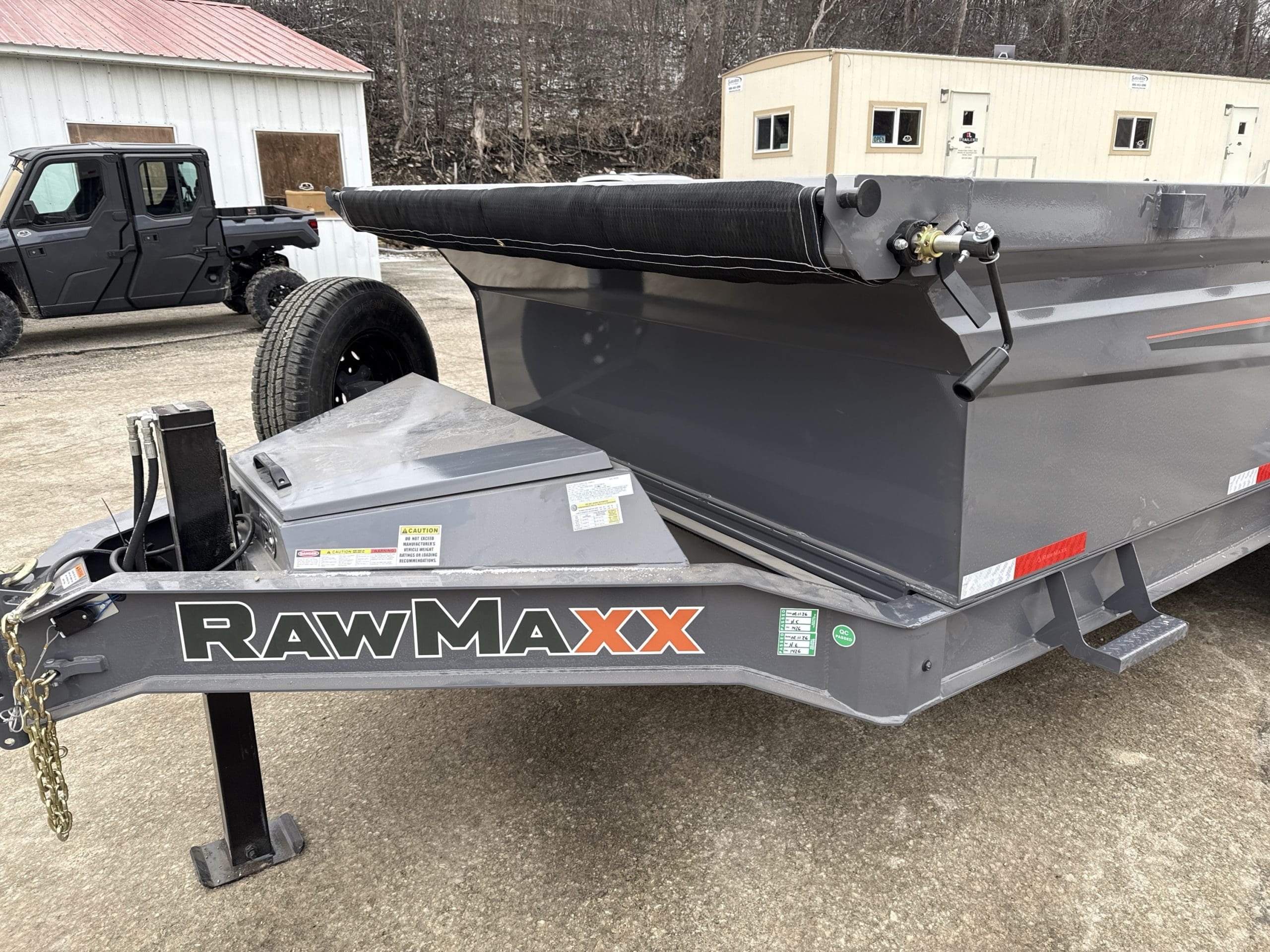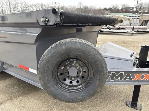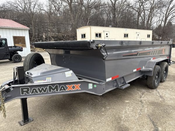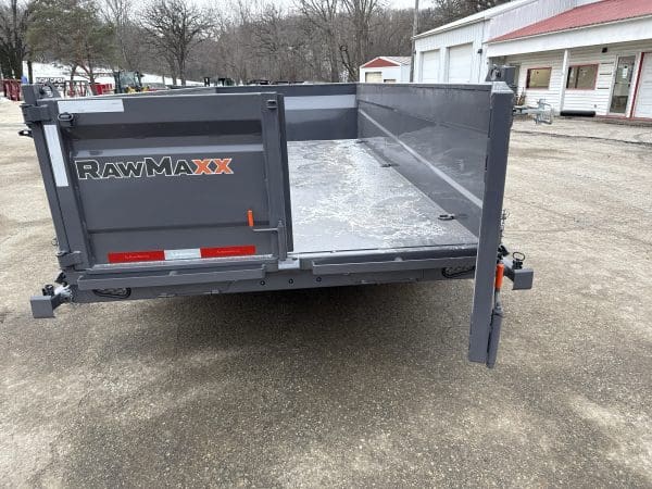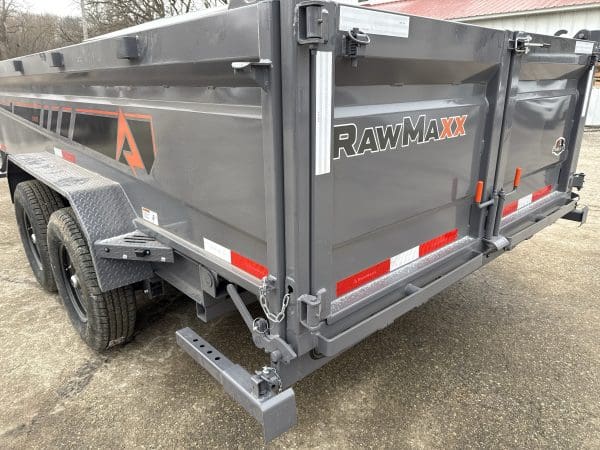 The Rawmaxx GDX dump trailer will rule the job site.  When those big jobs demand a strong dump trailer, the GDX answers the call.  The GDX is 83″ wide and is built to move all of your heavy material.  The Rawmaxx GDX dump has a 14,000 pound GVW and can haul over 11,000 pounds.  The Rawmaxx GDX dump trailer is built with an 8″ I beam frame with reinforced cross members and a 10 guage floor with 12 guage side walls.  The Rawmaxx GDX has supreme strength, supreme performance, and supreme confidence to tackle even the heaviest of jobs.