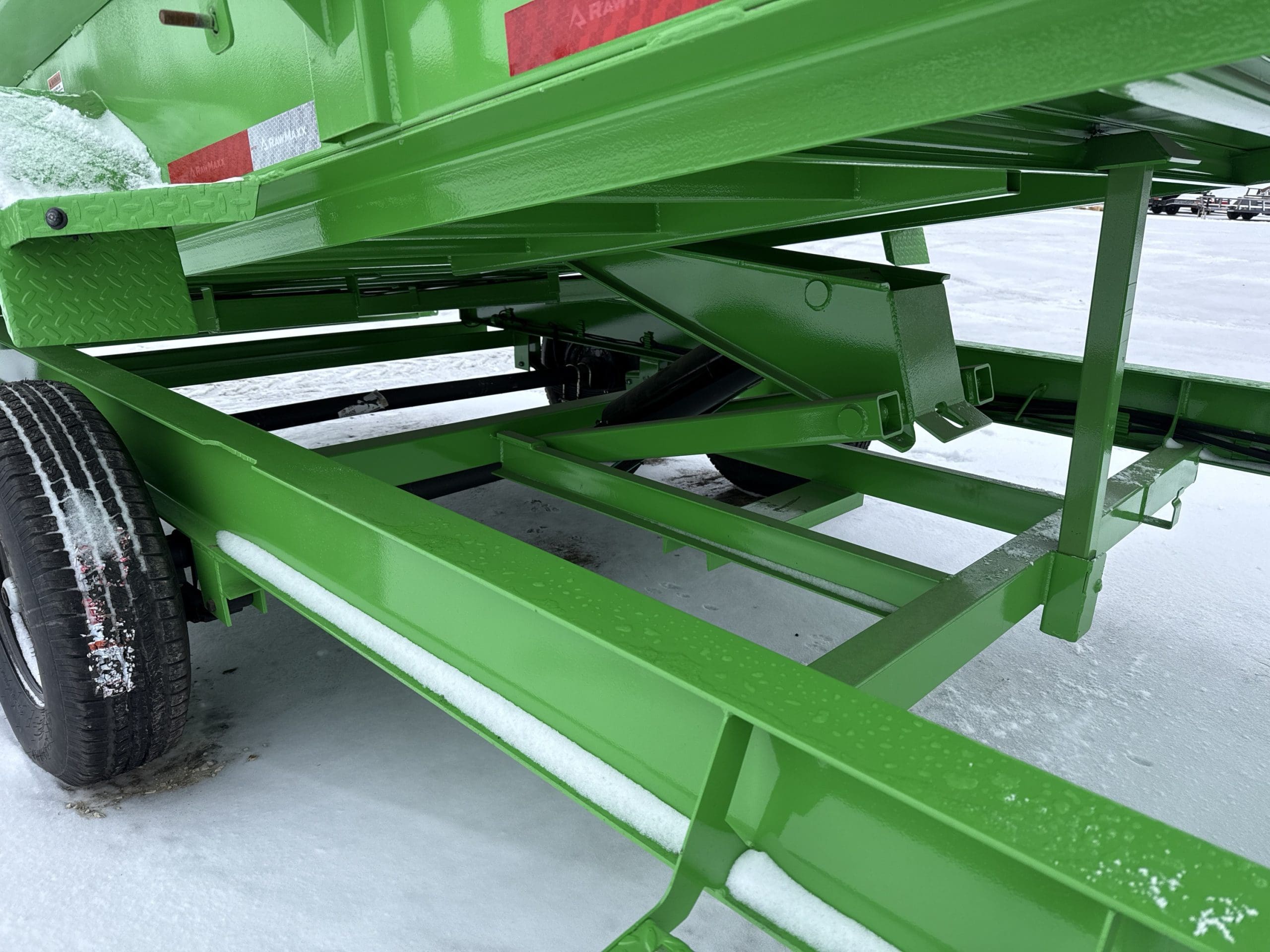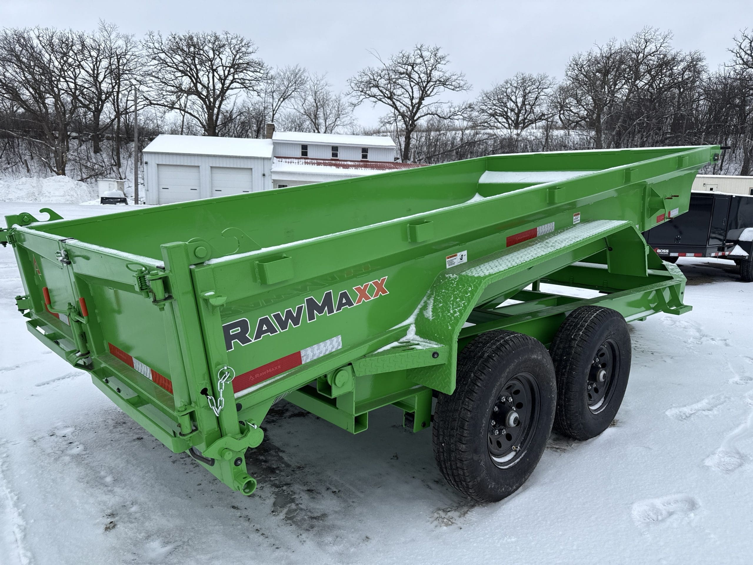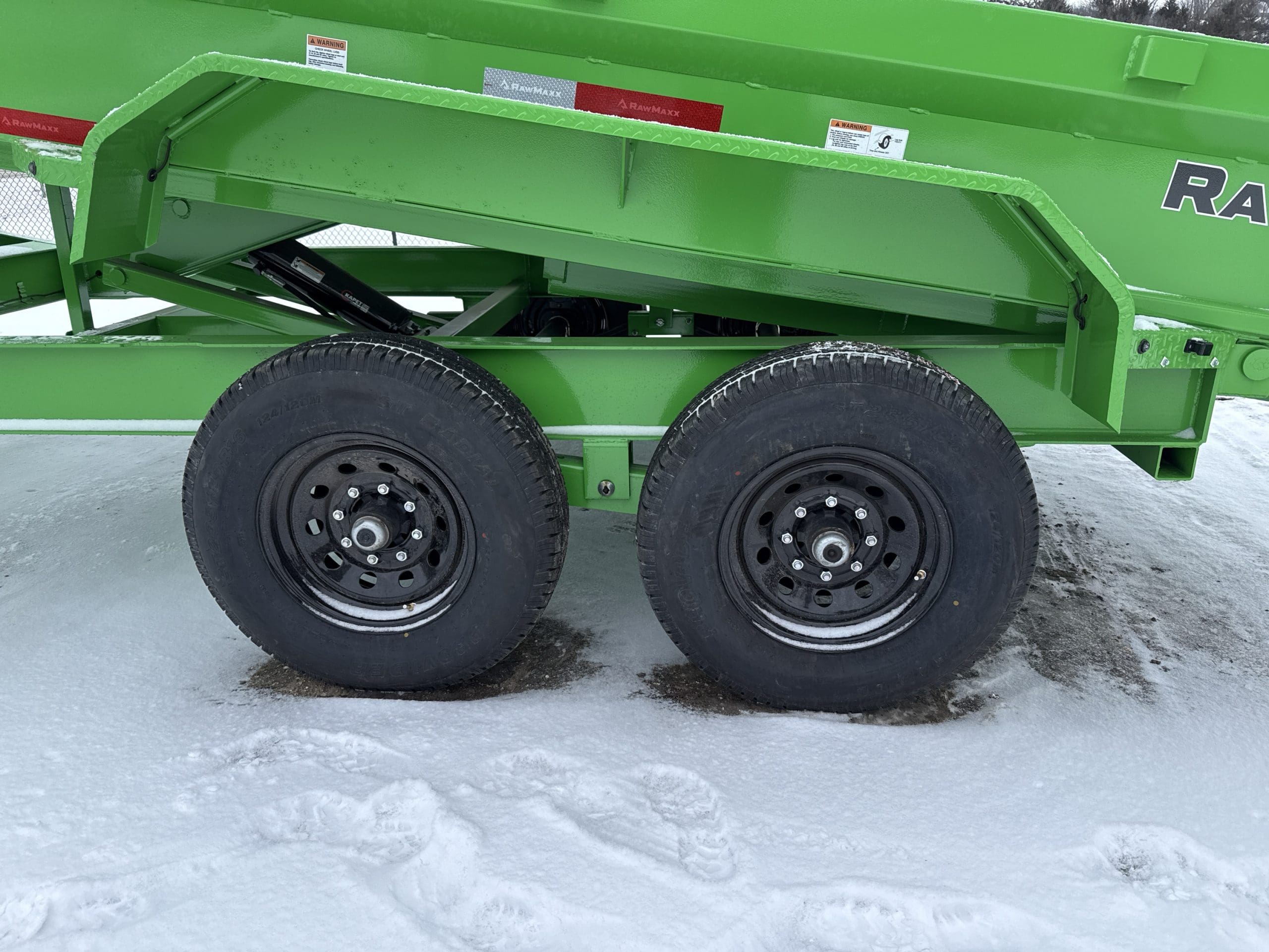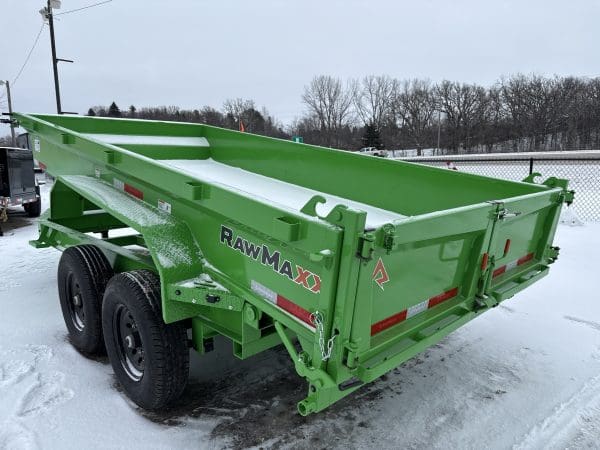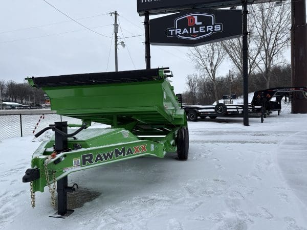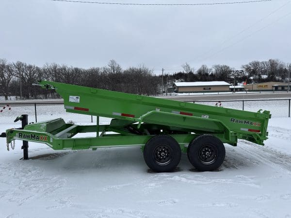 The Rawmaxx GDX dump trailer will rule the job site. When those big jobs demand a strong dump trailer the GDX answers the call. The GDX is 83″ wide and is built to move all of your heavy material. The Rawmaxx GDX dump has a 14,000 pound GVW and can haul over 11,000 pounds. The Rawmaxx GDX dump trailer is built with an 8″ I beam frame with reinforced cross members and a 9 guage floor with 12 guage side walls. The Rawmaxx GDX has supreme strength, supreme performance, and supreme confidence to tackle even the heaviest of jobs.
