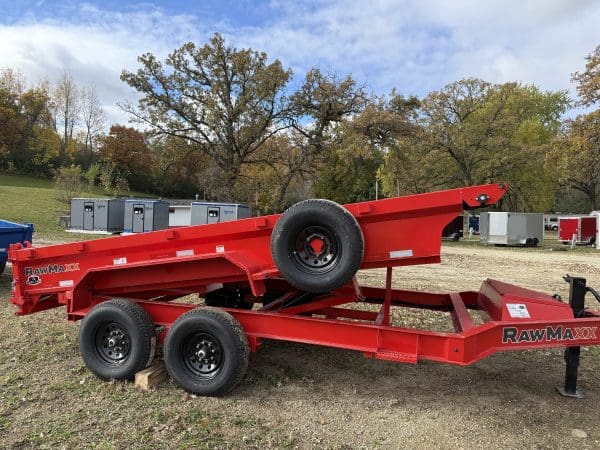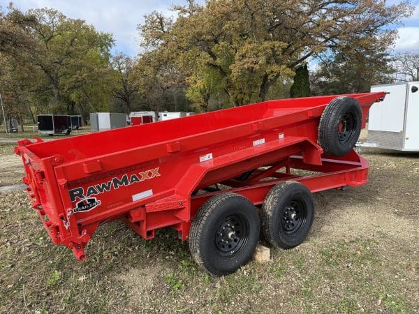The Rawmaxx GDX dump trailer will rule the job site. When those big jobs demand a strong dump trailer the GDX answers the call. The GDX is 83″ wide and is built to move all of your heavy material. The Rawmaxx GDX dump has a 14,000 pound GVW and can haul over 11,000 pounds. The Rawmaxx GDX dump trailer is built with an 8″ I beam frame with reinforced cross members and a 9 guage floor with 12 guage side walls. The Rawmaxx GDX has supreme strength, supreme performance, and supreme confidence to tackle even the heaviest of jobs.