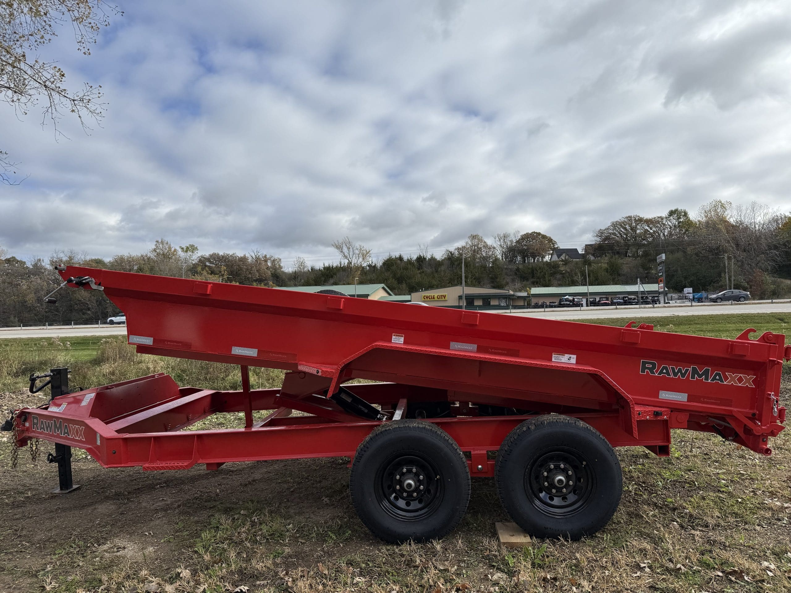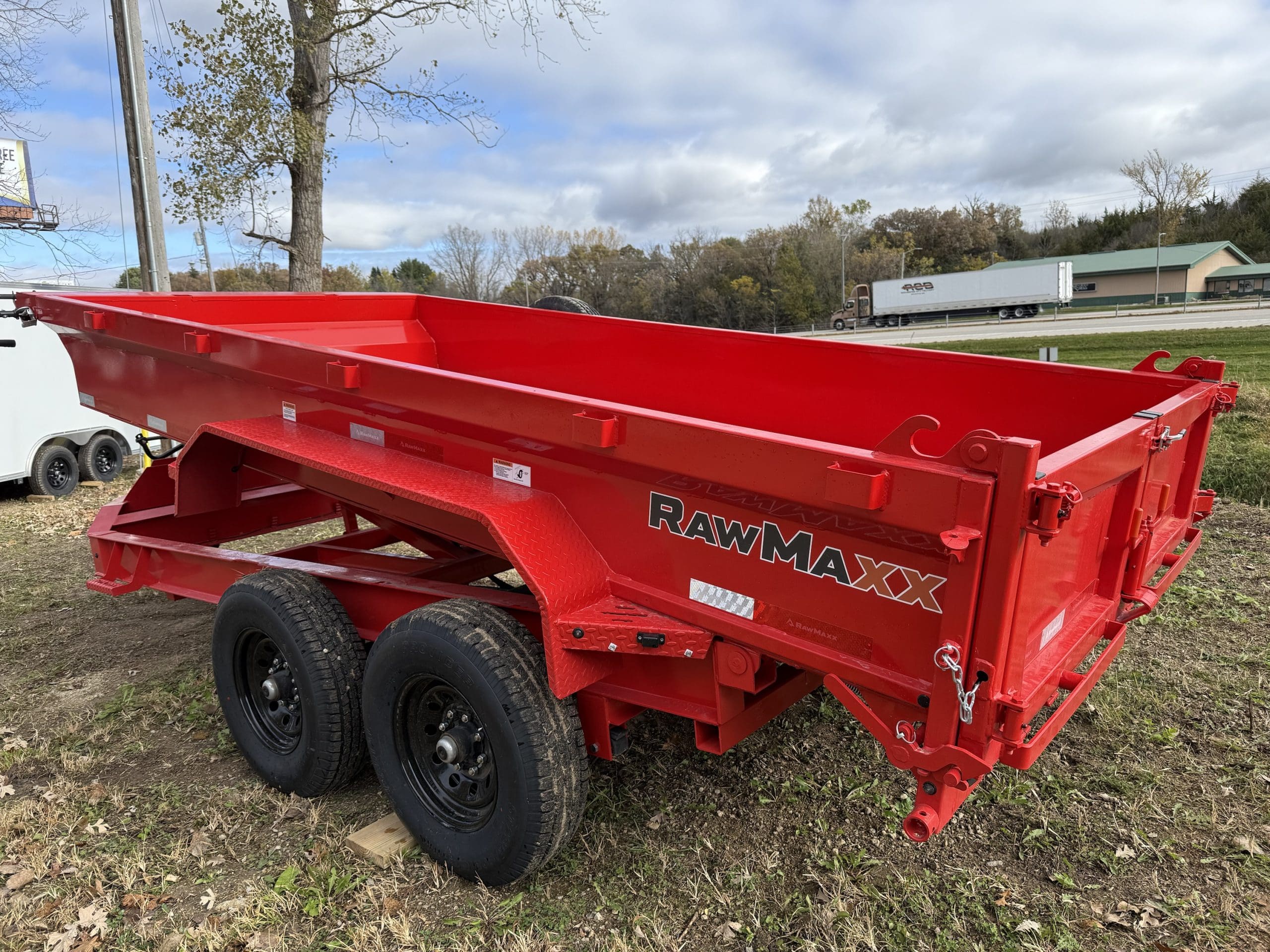 The Rawmaxx GDX dump trailer will rule the job site. When those big jobs demand a strong dump trailer the GDX answers the call. The GDX is 83″ wide and is built to move all of your heavy material. The Rawmaxx GDX dump has a 14,000 pound GVW and can haul over 11,000 pounds. The Rawmaxx GDX dump trailer is built with an 8″ I beam frame with reinforced cross members and a 9 guage floor with 12 guage side walls. The Rawmaxx GDX has supreme strength, supreme performance, and supreme confidence to tackle even the heaviest of jobs.