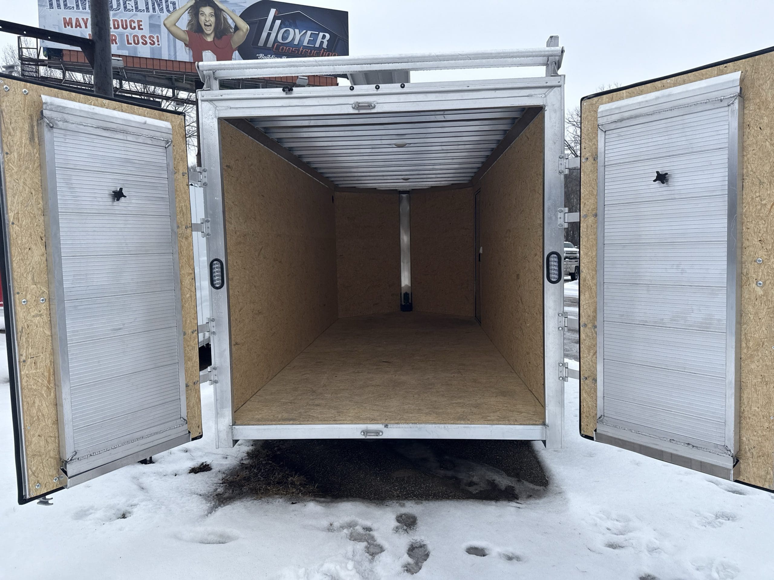 - DOUBLE BARN DOORS WITH STOWABLE ALUMINUM RAMPS